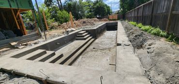 This particular design has a beach entry tied to a tanning ledge and play area for the grandkids. Spa , with 3.5' pool to 5' deep pool